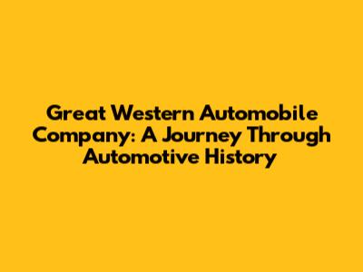 The Legacy and Enduring Impact of the Great Western Automobile Company