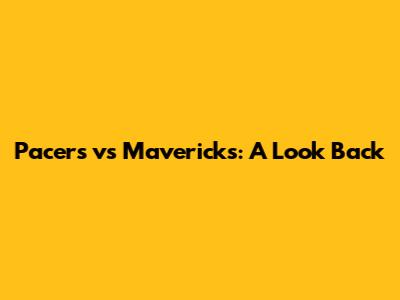 Pacers Vs Mavericks: A Look Back