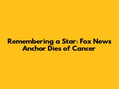 Remembering A Star: Fox News Anchor Dies Of Cancer