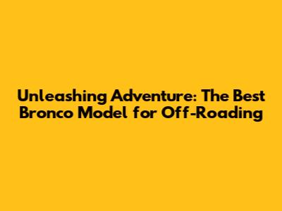 Unleashing Adventure: The Best Bronco Model For Off-Roading